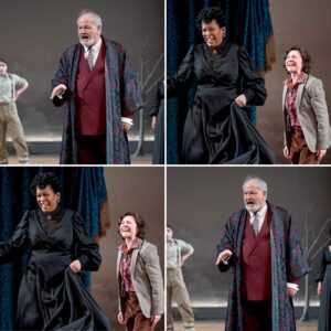 The members of the King’s court and military are characterized admirably by Patrick Agada, William Dick, Casey Hoekstra, Joseph Aaron Johnson, Jeff Kurysz, and Pablo David. On Helen’s arrival in Italy, she encounters three ladies (delightfully depicted by Christiana Clark, Emma Ladji, and Tanya Thai McBride) who become involved. In amongst all the adventures are the two comic reliefs – Mark Bedard playing Parolles, a clotheshorse coward who shows his true colors, and the always A-1 amusing Elizabeth Ledo as the requisite fool, Lavatch. Also in the mix are passages of well motivated movement, designed by Stephanie Martinez, which add to the motion and emotion of the play.