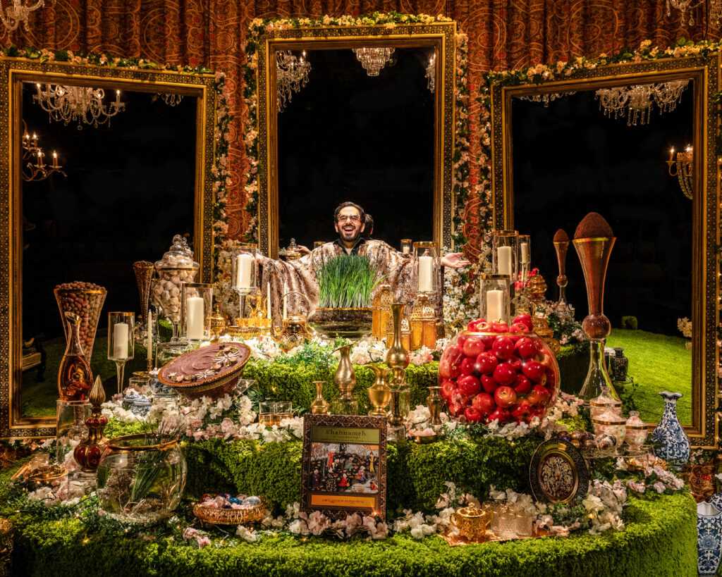 Chicago Shakespeare’s stellar production of “Avazz” is an absolute winner – it shines with the brightness we have come to expect from this world class theater. The moment you enter the venue the excitement builds. The set is stunning, with crystal chandeliers, lovely vases, candles, and a beautiful pink curtain backdrop. Three large mirrors and illuminating lighting are also significant in the dramatic moments of this well directed and beautifully written play. Front and center are festive holiday foods including sprouts, which remove bad luck and make room for good fortune. A large glass bowl of apples dominates a portion of the laid out feast – they signify beauty. The celebration has been prepared and you are a guest.