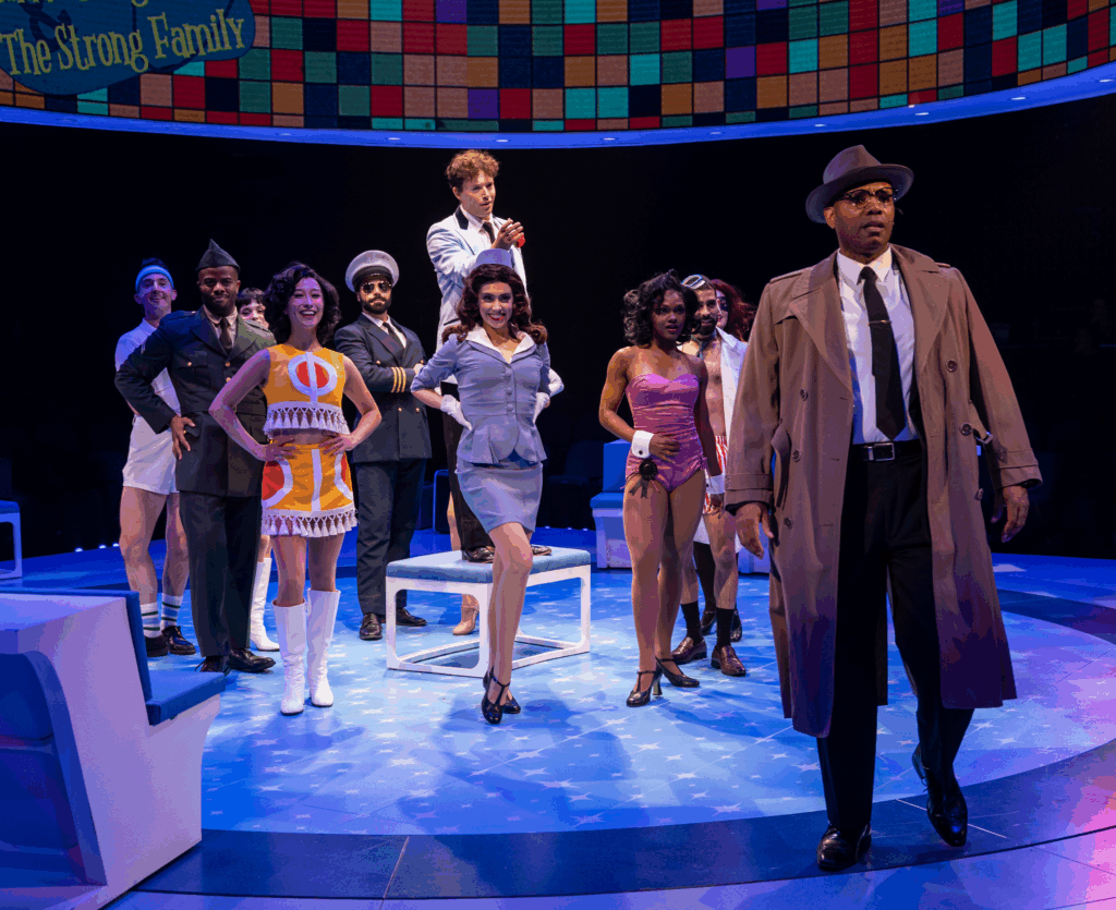 Marriott Theater Lincolnshire’s fun and energetic production of the musical version of the Tom Hanks – Leonardo DiCaprio classic chase film “Catch Me if You Can” is absolutely fabulous. Vocals and acting are top notch, the entire cast extremely talented, with excellent characterizations, including Chicago favorites Alexis J. Roston and Sean Fortunato, who bring their A-games in flawless performances. FBI agent Carl Hanratty, played excellently by Nathaniel Stampley, is realistic with enormous strength of character. JJ Niemann, as the slippery Frank Abagnale Jr., is incredible, giving the loveable bad boy depth. Love interest Brenda, as expertly portrayed by Mariah Lyttle, brings the house down with her show-stopping voice.