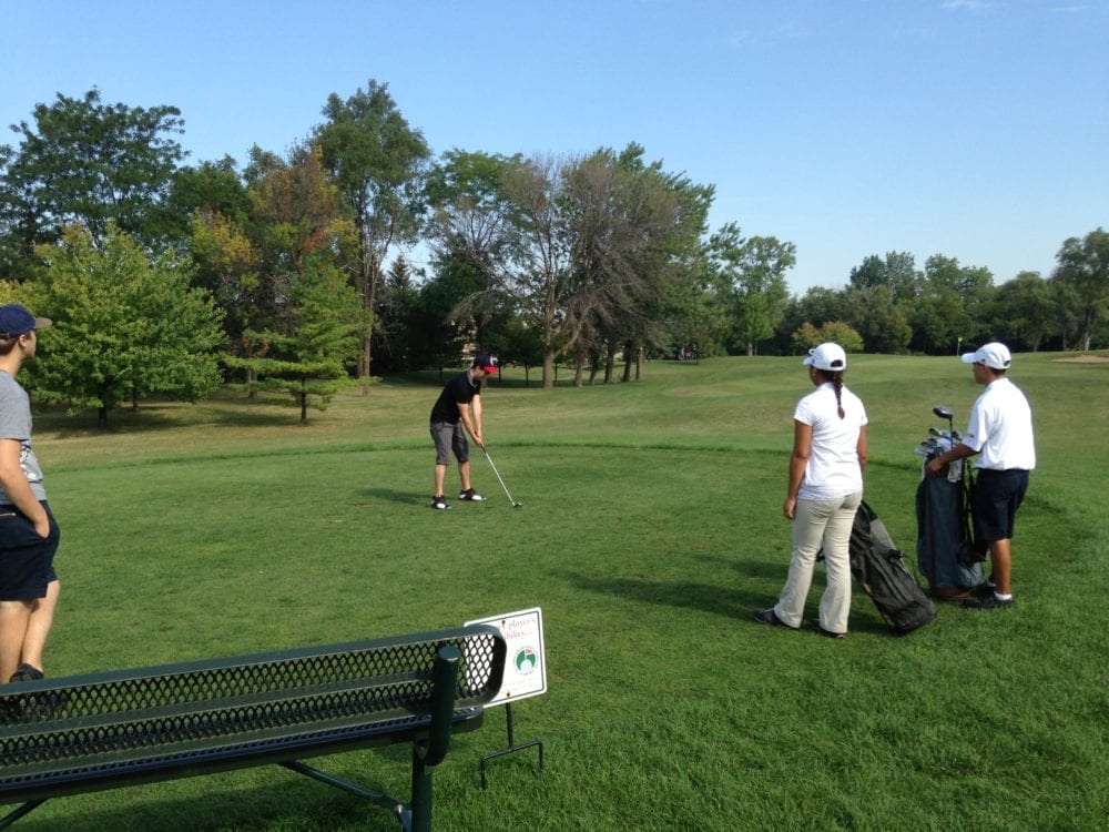 Nineteen members of the team volunteered as caddies at the Links & Tees, a driving range and golf course located in Addison.  During the four hour period the students were there, they raised $200 for the organization via free-will donations made by the golfers.