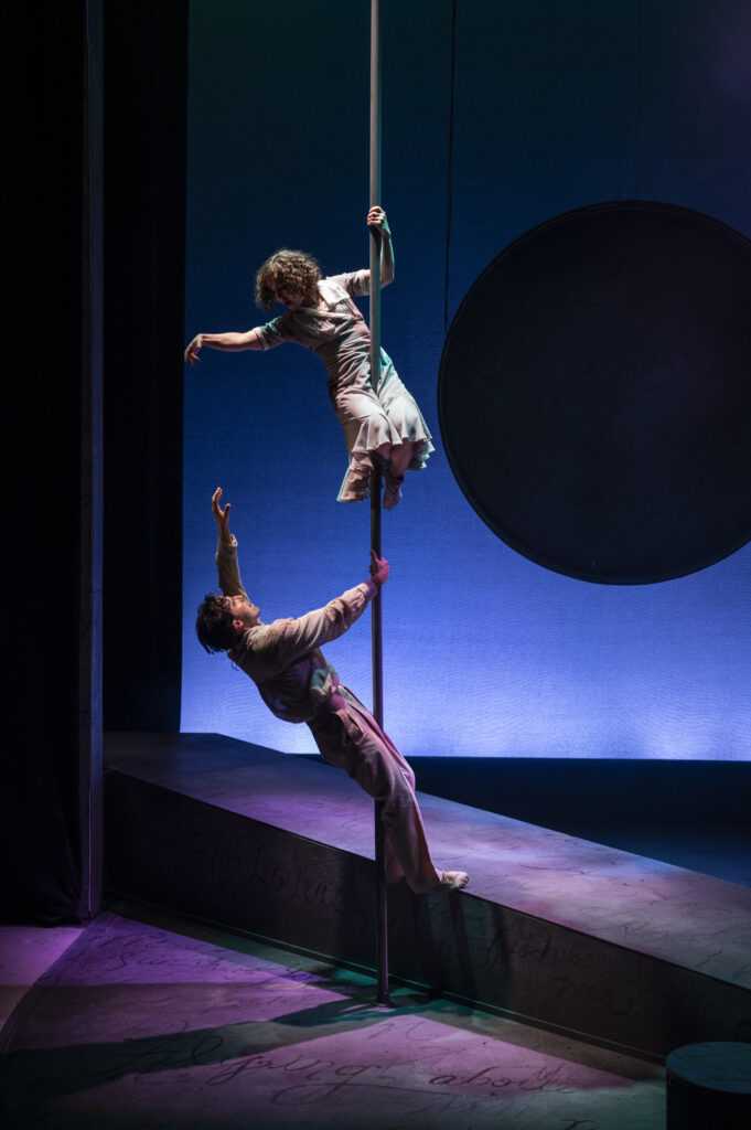 Northlight Theater’s production of “The Flying Lovers of Vitebsk” is experimental theater at its finest. This stirring production makes me very proud of my Jewish heritage. It tells the poignant story of renowned artist Marc Chagall and his beautiful wife Bella, played (and sung) perfectly by Jack Cahill-Lemme and Emma Rosenthal, respectively.