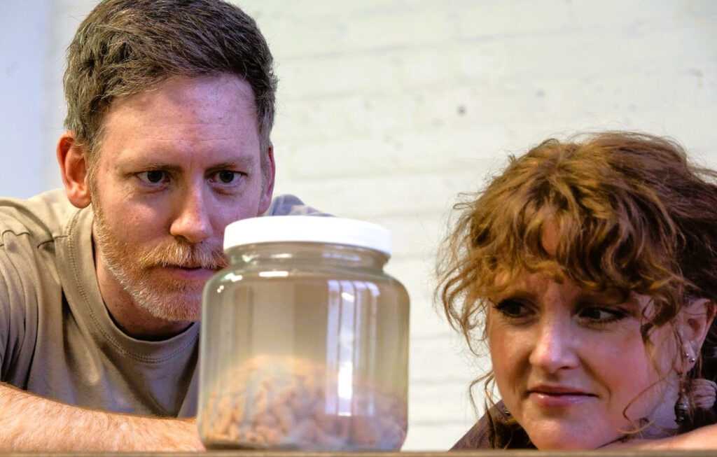 The Tin Drum Theater company presents the Chicago premiere of “Incognito” by Nick Payne. Four actors exquisitely play four to six interchangeable roles within this surreal, complex play. Teddy Boone is a psychiatrist that steals Albert Einstein’s brain for research. Riles August Holiday stands out as Henry, a patient who has lost his memory, as well as for the multiple characters with his changing posture, facial expressions, and accents. Shannon Leigh Webber characterizes a neuropsychologist venturing into a relationship with Patricia, portrayed by the talented Erin Alys.