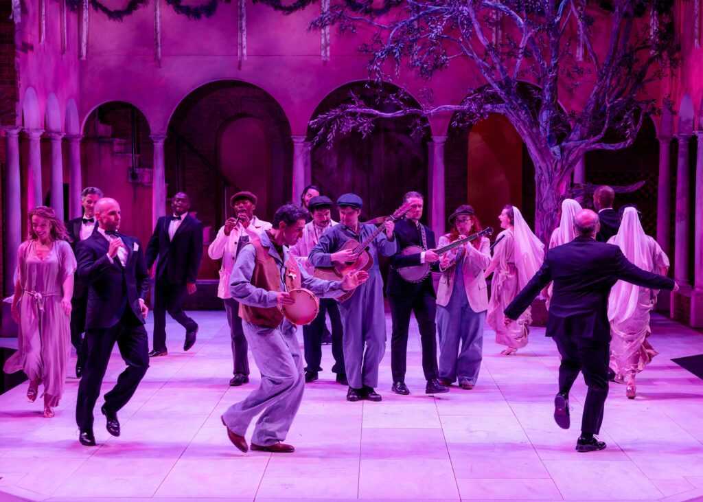Chicago Shakespeare on Navy Pier is at it again, delivering The Bard’s best. This time the play is “Much Ado About Nothing”, but in their production, there is much about everything, starting with a striking minimalist stage jutting into the audience – the design in the back of the set mimics the theater, enticing the watchers to feel like part of the story.