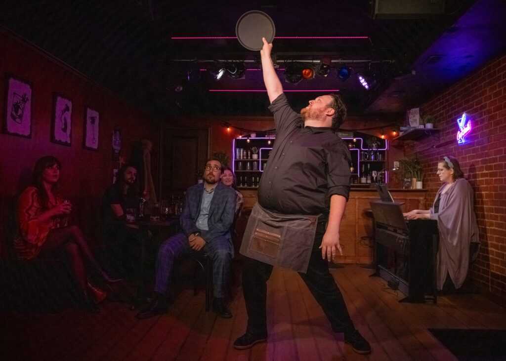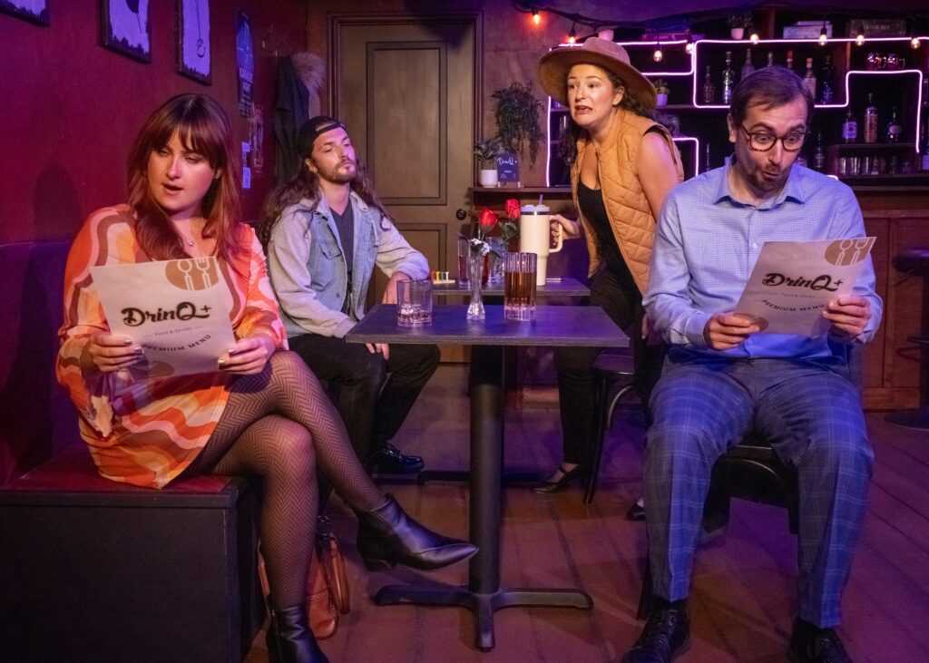 “First Date” is a fun time, with serious elements that are expertly executed, especially during a touching scene regarding the death of a workaholic mom. The musical numbers are spot-on, vocals strong and clear. The keyboard player keeps the energy flowing throughout the entire one-act. I especially loved the very realistic set; pink rope lights that turn into various other colors help light the stage and add to the quaint restaurant atmosphere. Props are used most appropriately and add to the believability of the production. This play is perfectly penned, masterfully directed depicting the dreaded first date and how the use of technology may have changed the dynamics but not the nervous anxiety. Costumes are nicely done, with minor changes that enhance the bevy of characters brought to life on the stage. The actors break the fourth wall with ease, creating an atmosphere that makes the audience feel like they are part of the restaurant crowd.