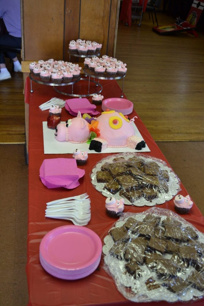 The Rhodes American Legion Post #888 held its annual “Pig Roast” on Sunday July 28th. It included two whole pigs cooked to perfection by post members inside of 2 specially designed pig roasters. They were served buffet style along with many delicious side dishes made by the post ladies auxiliary. There was also a dessert table with brownies, cup cakes, and a pink pig cake. Located outside was a bags tournament attended by close to 25 teams. After dinner raffle tickets were drawn for many raffle prizes. Some of the raffle prizes were donated by local businesses and post members. A good time was had by all. The proceeds from this event benefited veterans in need of assistance.